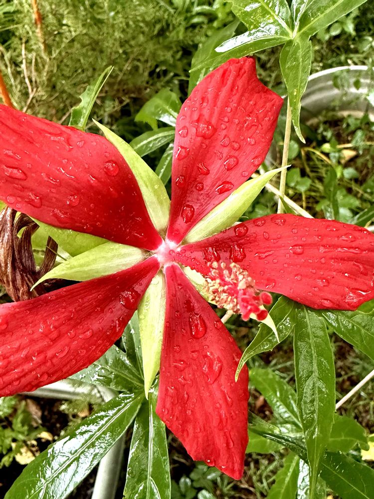 やっと雨が降り、今朝の水まきはパス😏ふと見たらモミジアオイが一輪❗️