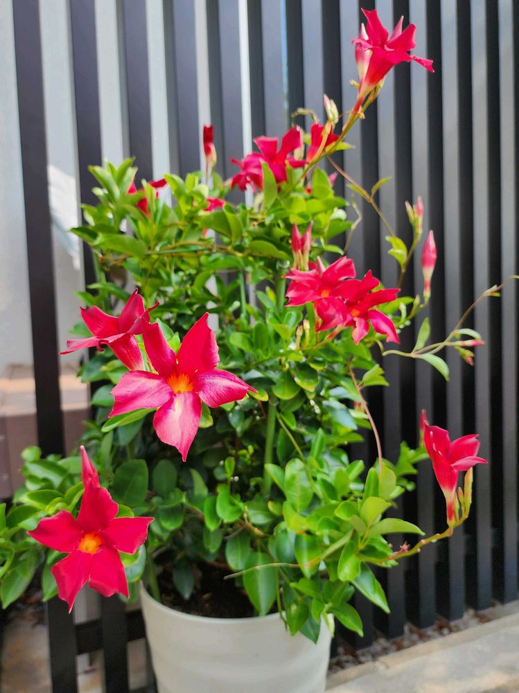 💚二年生のサンパラソル💮 連日の猛暑で花数がへり、色も薄くなってきた。又葉も黄色くなって今年は夏越しは無理かも⁉️