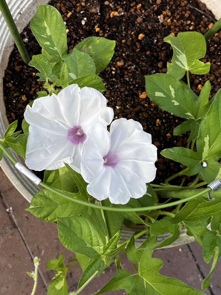 溢れ種からの 朝顔 ヨルガオ お散歩で出会ったヒルガオです