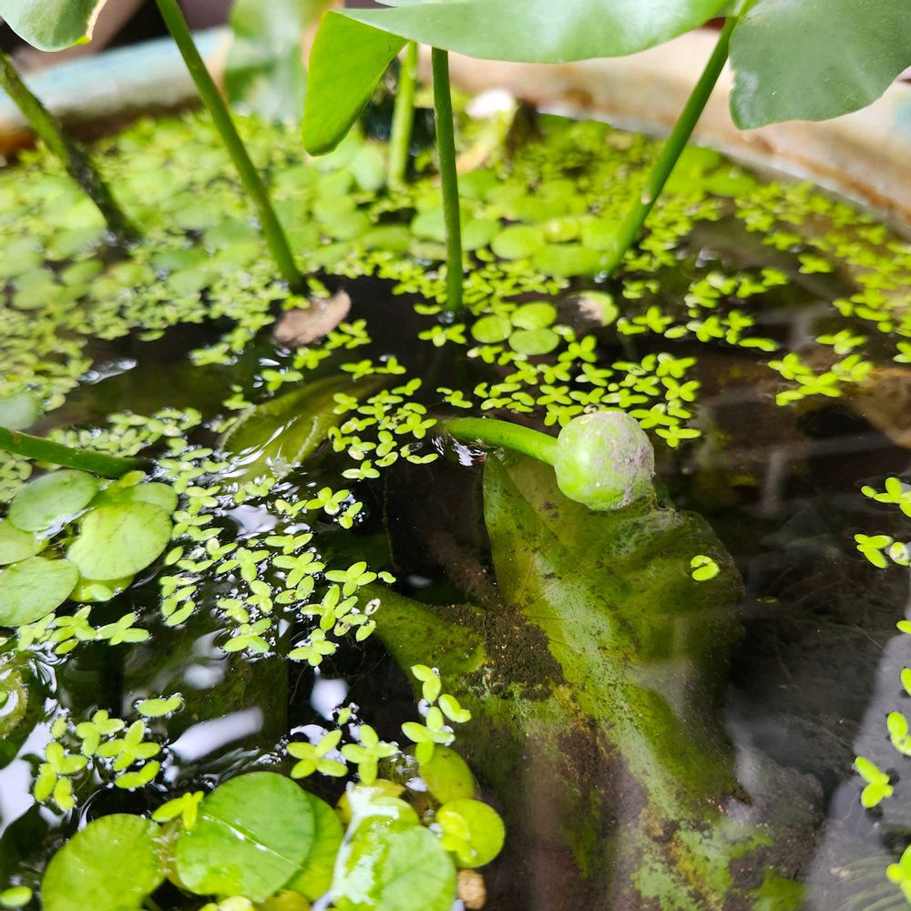 前に 蓮の種から芽が出たのをバケツに入れっぱだったのや