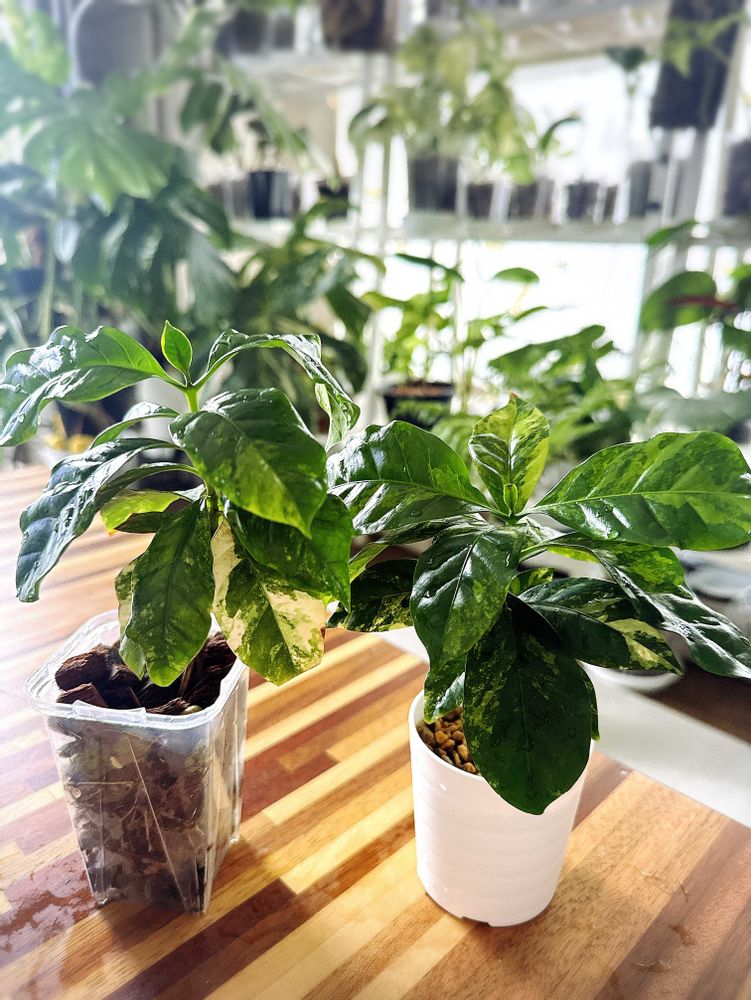 今年購入で爪楊枝サイズの幹だった斑入りのコーヒーの木です☕️