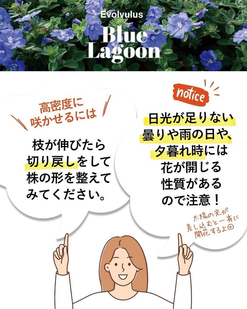 PWのエボルブルスは、まるで空を切り取ったような美しい青色の小花を咲かせます。