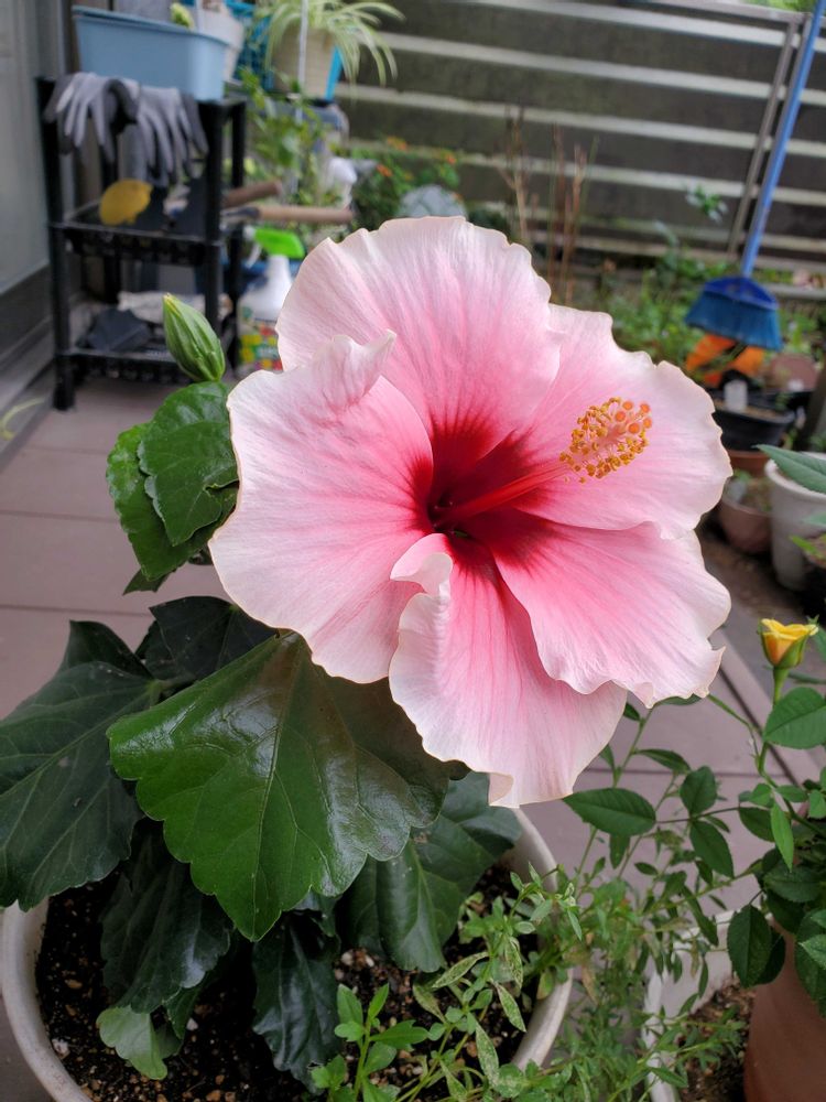 我が家の庭ではなかなか花が思うように咲きませんが、ベランダでハイビスカス🌺が咲いてくれました~⤴️