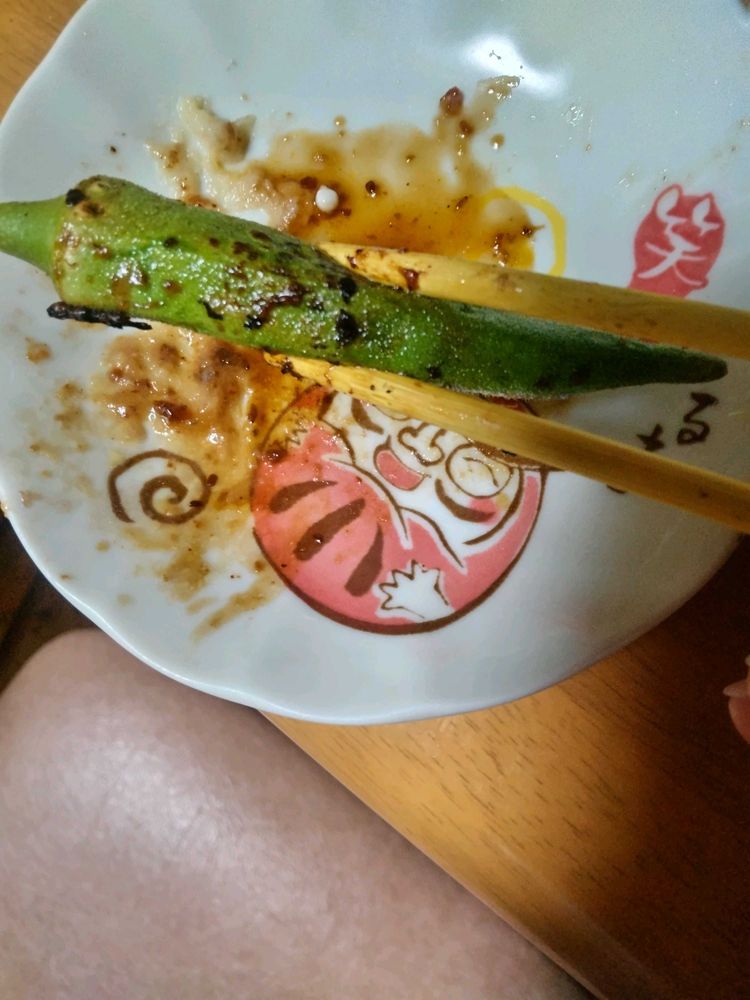 ほんと、オクラの素焼きと焼き肉のタレはマジに美味しい😋🍴💕