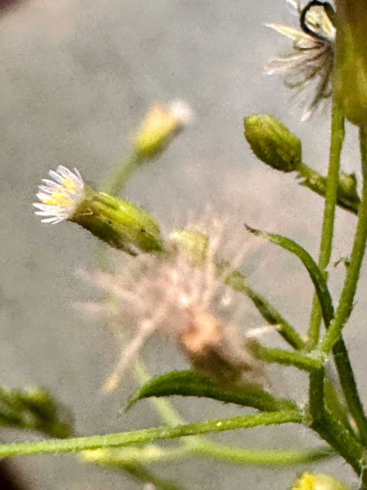 オオアレチノギクの舌状花はまるでわかりませんでしたがヒメムカシヨモギの舌状花は白くはっきりと見えました。