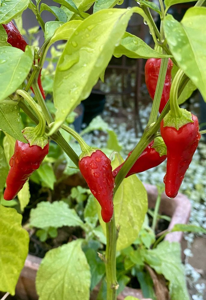 ピーマンやシシトウなど、辛くない唐辛子と一緒に植えると、辛さが移るので、鉢植え・別場所で育てています。