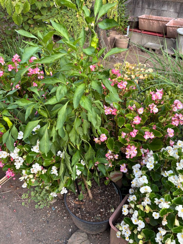 母親のベゴニアのプランターの間に置いてるので、強い風や雨で、ベゴニアに倒れかかっています。