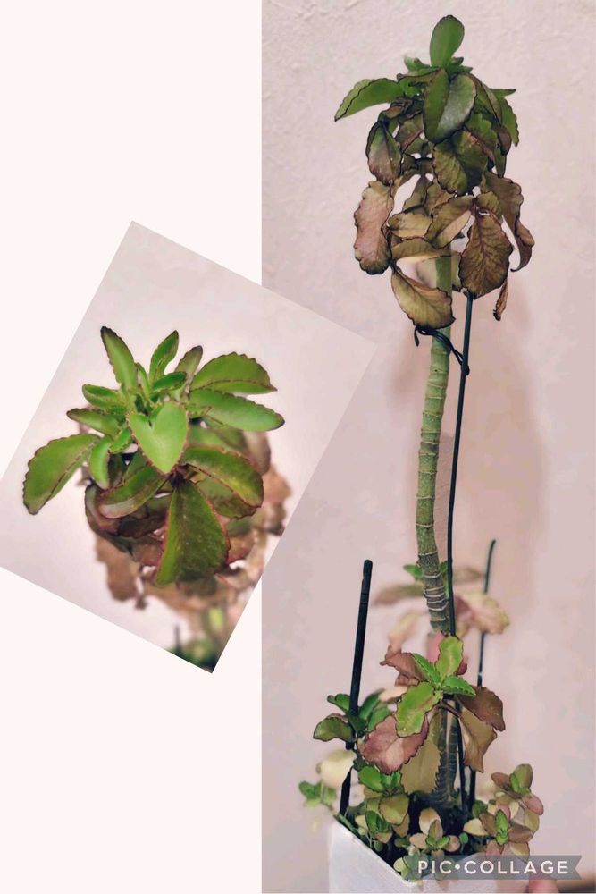 真ん中の親株だけ伸び上がって、📷に四苦八苦する状態の多肉。