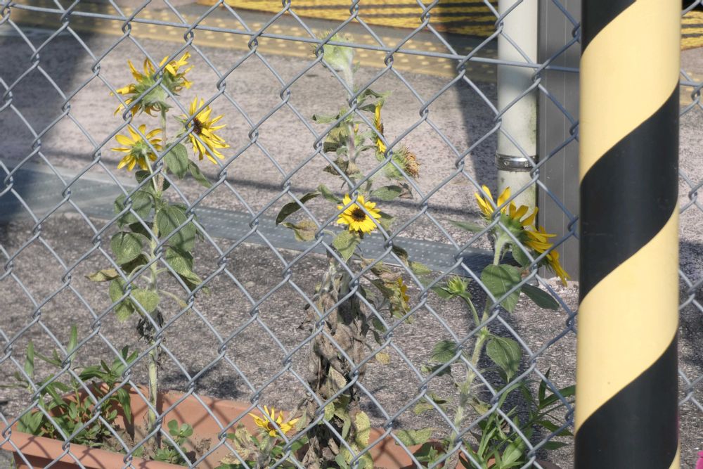 駅プラットフォームに並べてあるプランターの一つ。