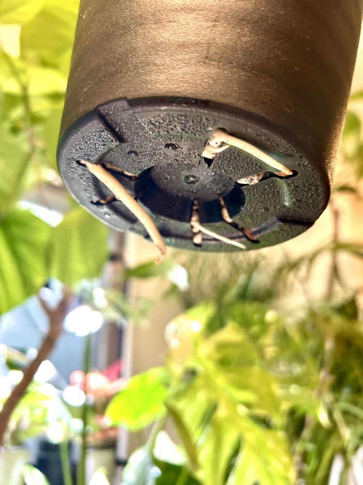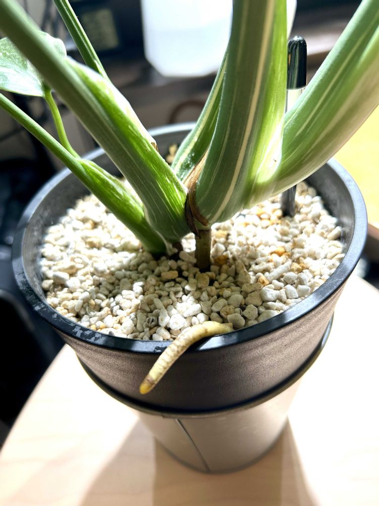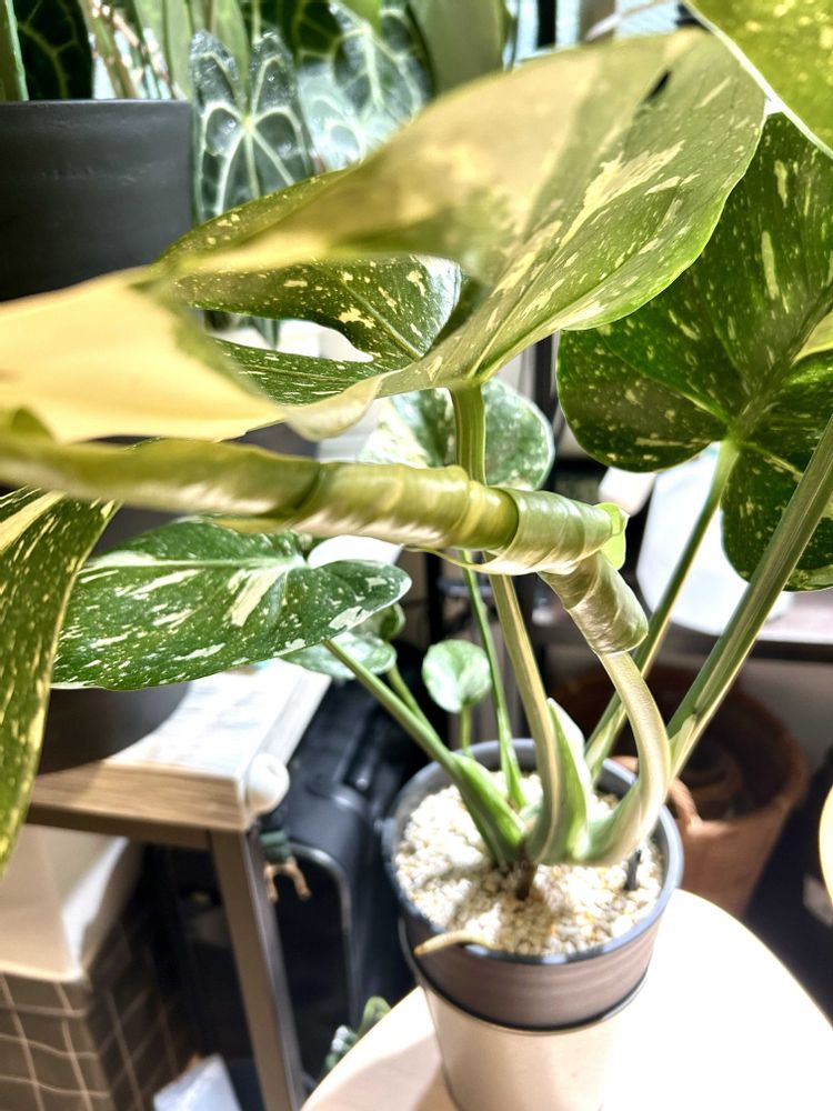 タイコン3号機😊成長がとっても早いです😊 鉢の上からも、下からも脱走根が出てきています😊先日植え替えしたばかりなのに😊びっくりです😊モンステラタイコンステレーション イエローモンスター👾