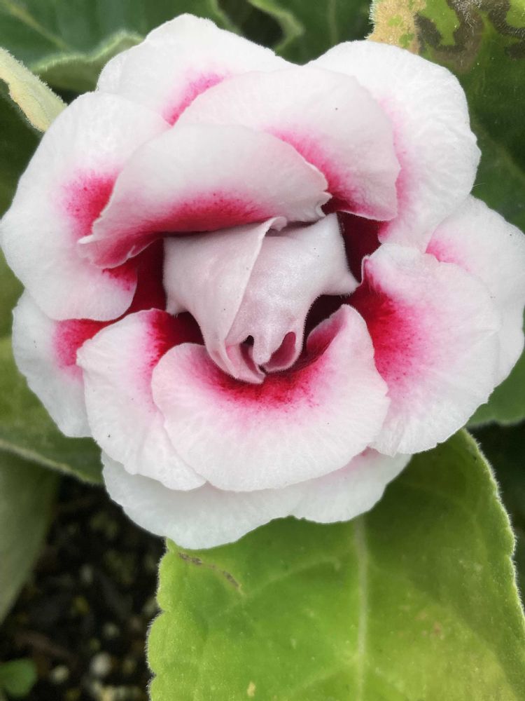 グロキシニア切り戻しして3回咲いたのかしら🩷🤍