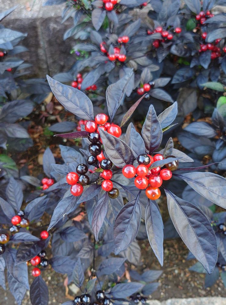 2年前になりますが、農業試験場にも、ご覧のようにたくさんの種類の観賞用のトウガラシが栽培されていました😀 なかでも2枚目、黒光りする「ブラックパール」は印象的でした。まさに魅惑のブラック軍団でした😎🤭(2023年、農業試験場にて)