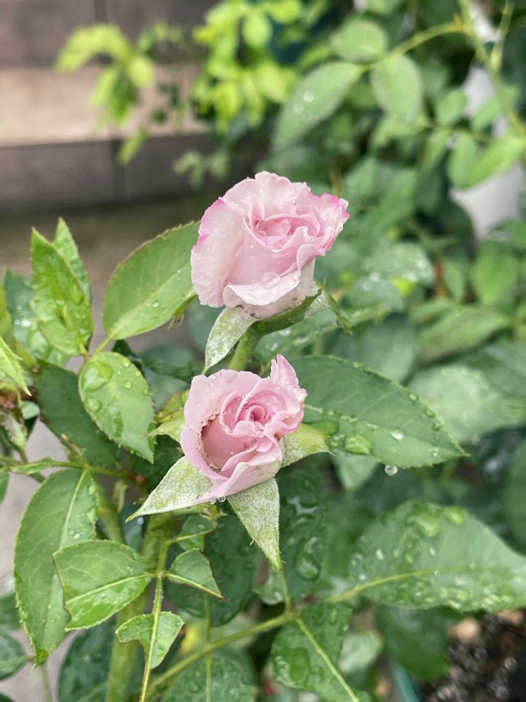 今朝も台風🌀来る前に、と思ってみたら🐛がバラの中に顔突っ込んで食べてました💦