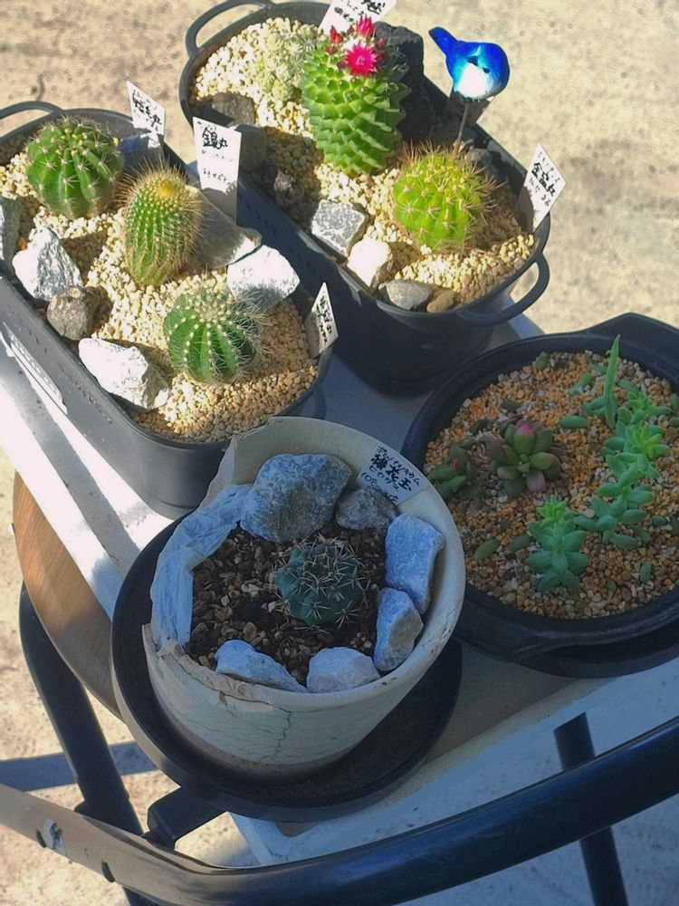 昨日植え替えたサボテン達、とりあえず昨日の夜から外にいます。暑すぎないように折りたたみ椅子→発泡スチロールの蓋の上に乗せてカーポートの下に。マミラリア トルカさん、毎日ご機嫌でありがたいですわ。