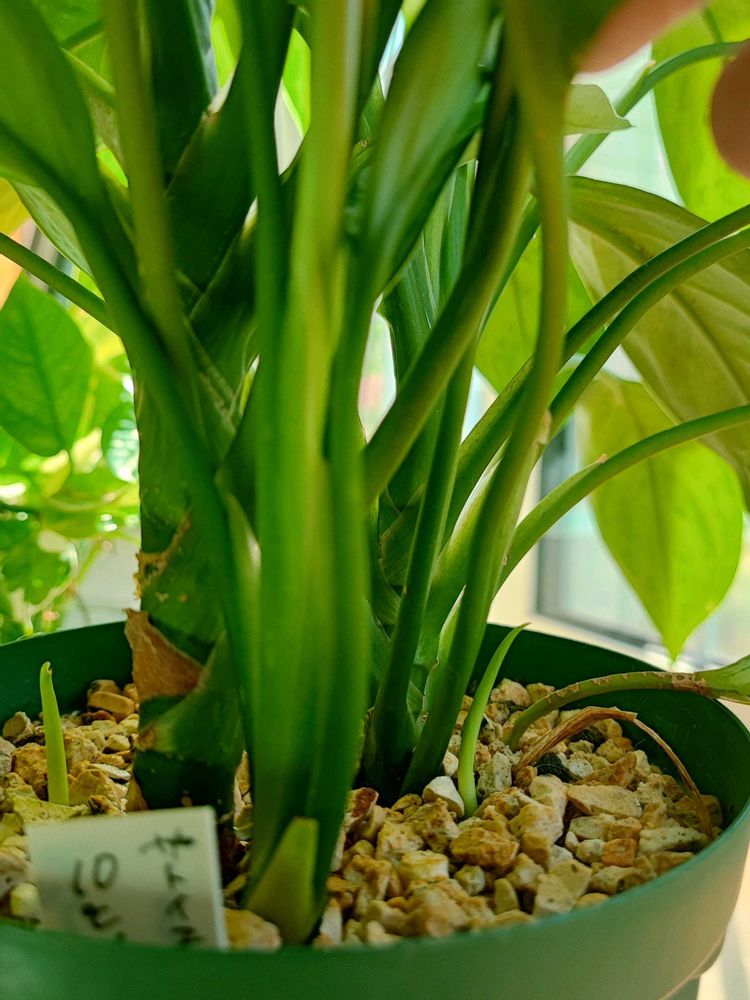 花が終わったアグラオネマ シルバークイーン今度は子株作戦らしく、新芽ニョキニョキです。