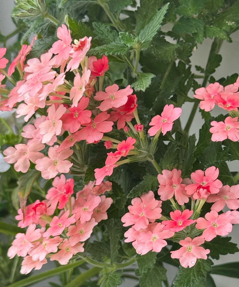 水曜日くらいから若干気温が下がった影響なのかPWスーパーベナ「ピーチメルバ」、育ってきたつぼみがどんどん開いてきてます