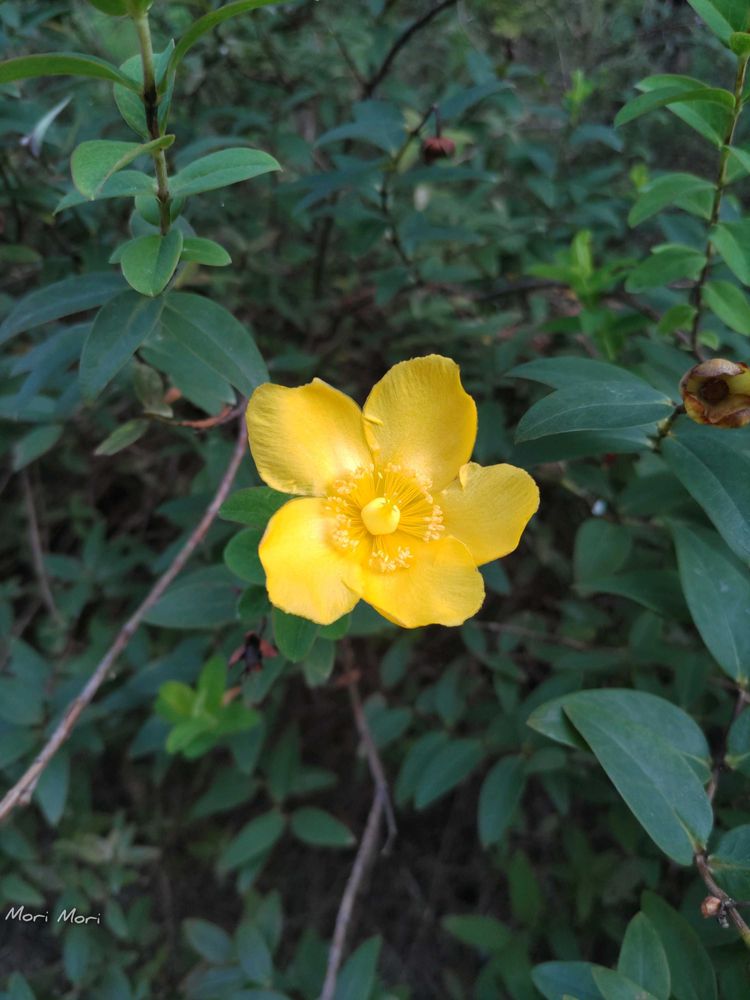 花壇で金糸梅が1輪だけ頑張って咲いていました✨
