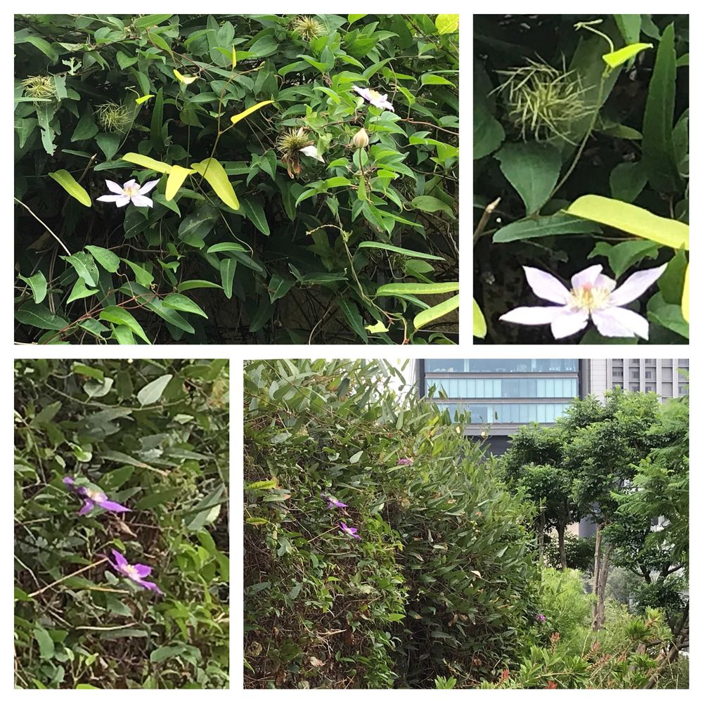 ⑤壁面にクレマチスが咲いていました🤍💜💚