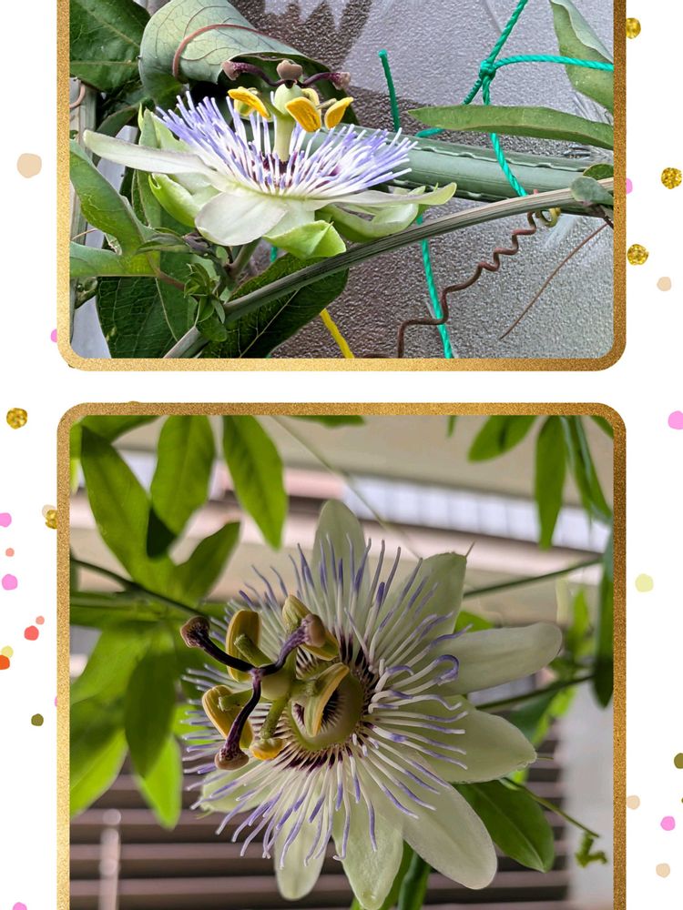 3️⃣白いトケイソウの花がやっと2輪目咲きました😍今日も私がお助けマンに🙏もう自分で咲く力ないのかな?