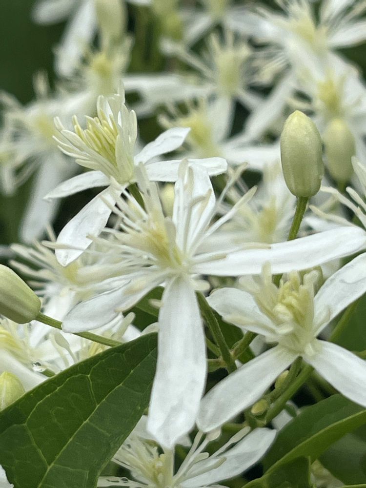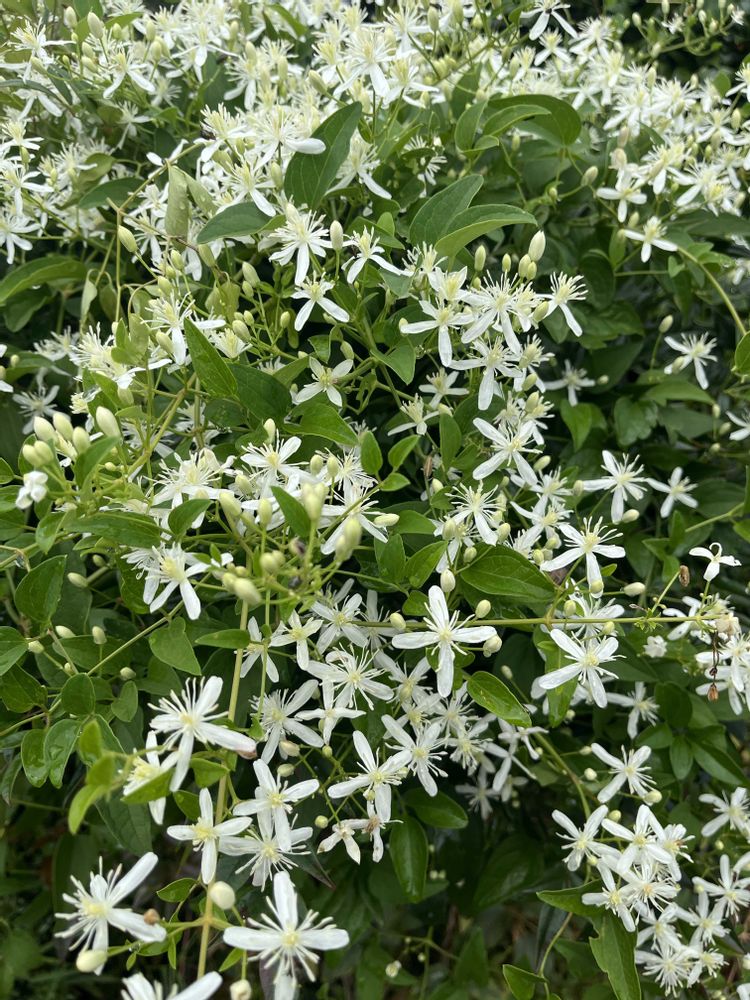 センニンソウ,こちらでも咲き出して来ましたよ😄木やフェンスに白い花が咲いてると思うと,大概,今はセンニンソウだよね🤗