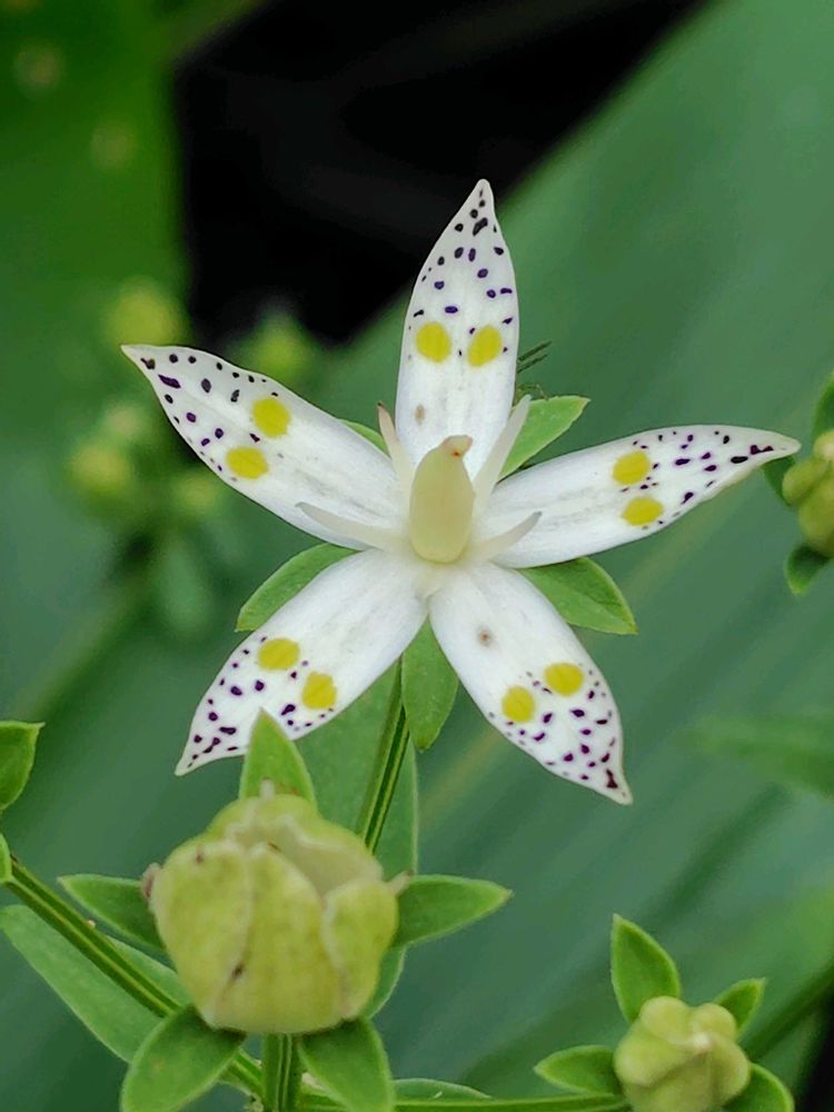 花冠にある斑点を夜明けの星空に見立てて、アケボノソウと名づけられた。