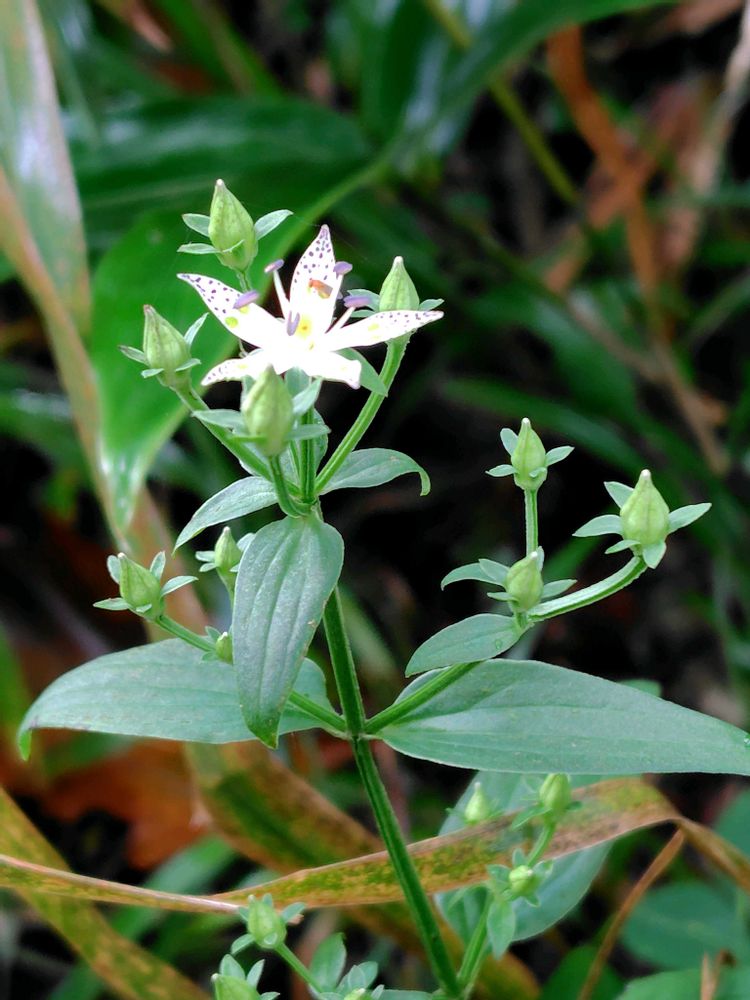 花柄の先に星形をした径1.5〜2cmの白い小花を咲かせる。