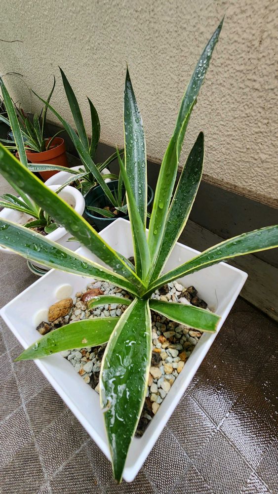 アオノリュウゼツランの葉の縁取りが斑入りになったヤツですね♪