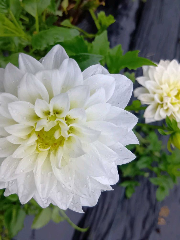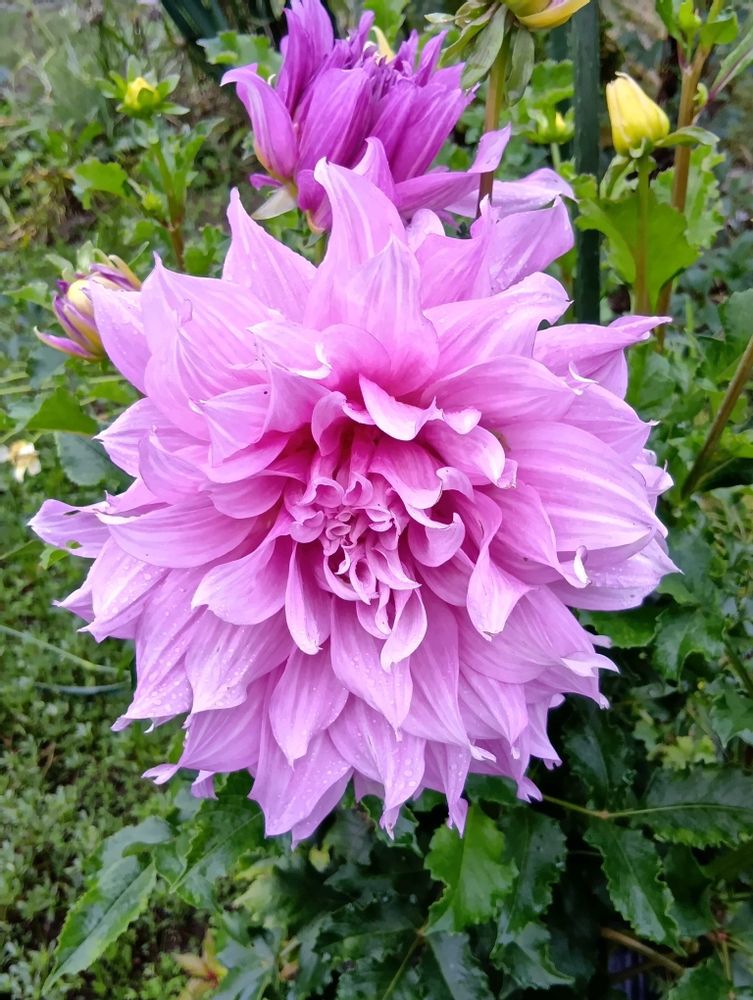 朝雨があがったときに ピンク色の大輪のダリア 私の顔くらいあります( > ·̫ <)👍🏻(>ᗜ<)