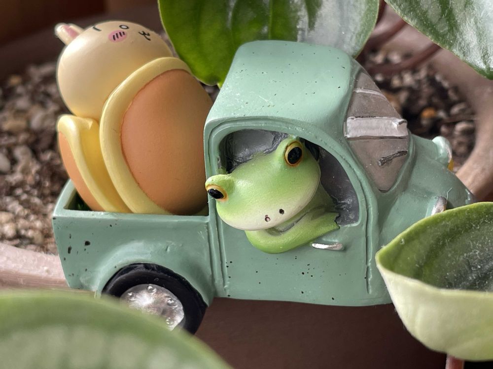 きれいなお花にかわいいカエルの置物にほっこりしたよ🌼🌸