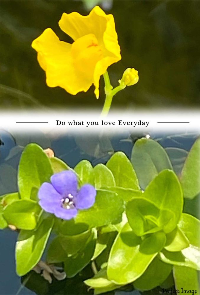 メダカの泳ぐご近所のカフェの水鉢に水性植物が咲いています💕