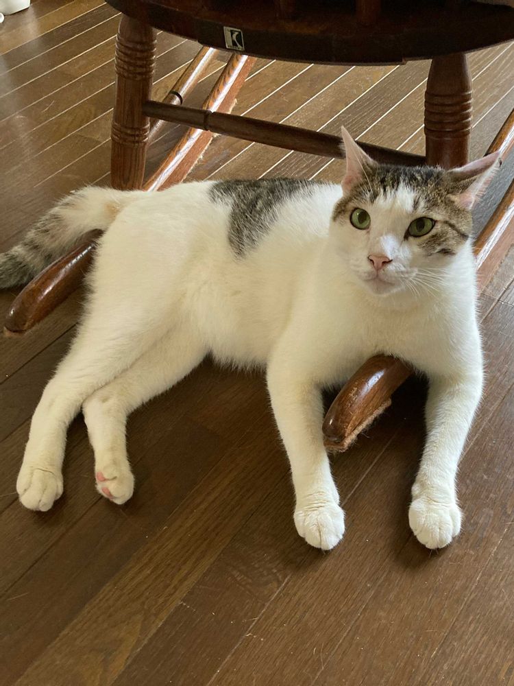 雨上がりの朝の赤いアサガオとねこちゃん(一歳の男の子)