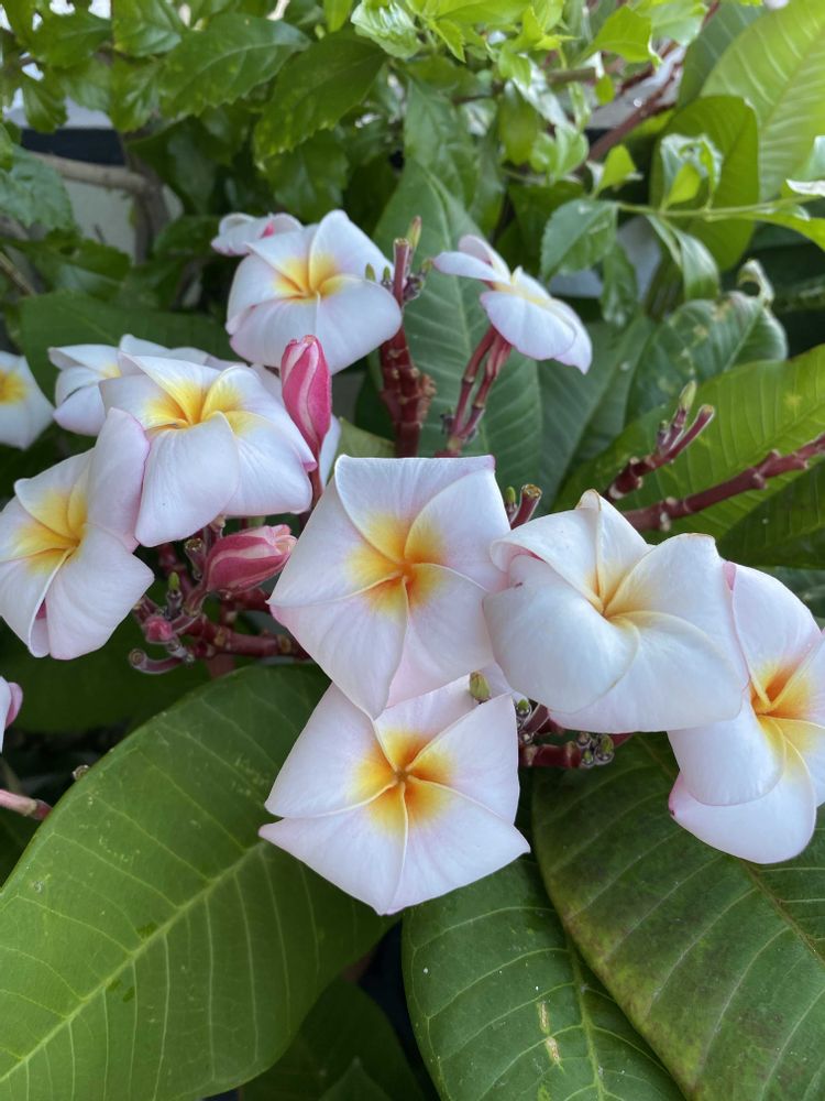 たくさん、咲いていますね✨我が家のプルメリアは葉っぱだけが、ワサワサで花は咲いていません😅来年に期待します。