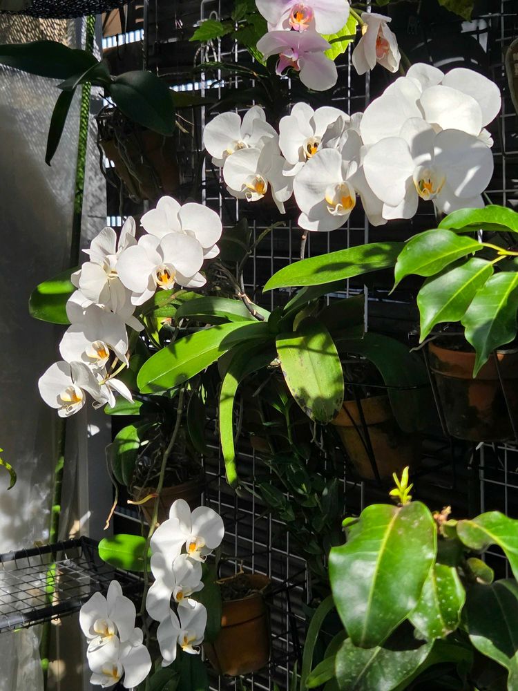 朝日を浴びたコチョウラン達、長い間咲いてくれていま~す