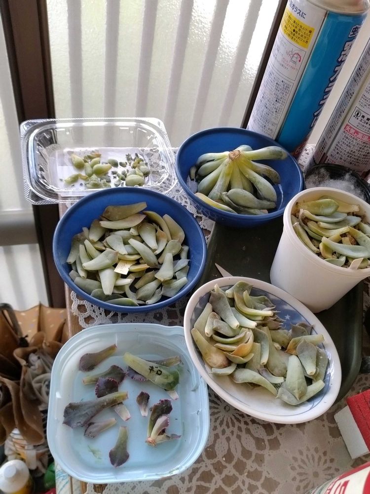 葉挿しとって根元に置いてるけど傷んでるのもあったりで苗によってもう諦めモードです😰