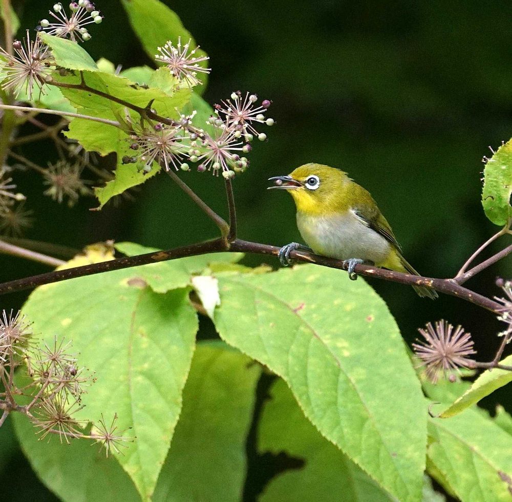 メジロはウドの実が大好きなんだ(ˊ˘ˋ* )