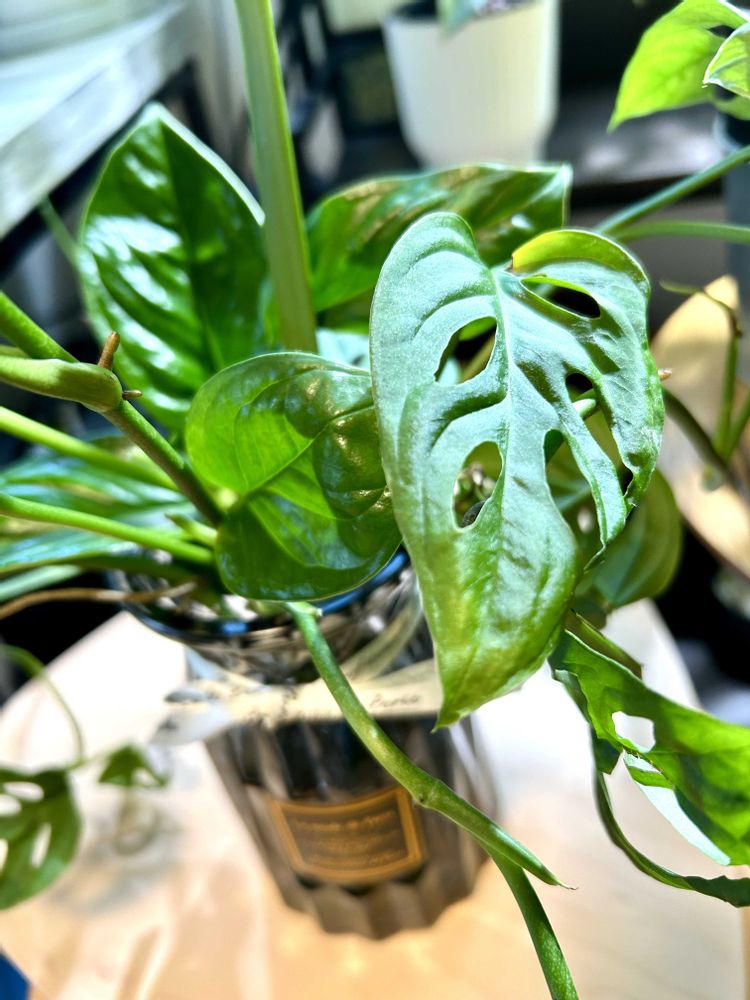 水差し🏺 3種類のモンステラを1つの花瓶に水差ししました😊モンステラは丈夫なので、元気に育っていくことでしょう😊華友にプレゼントします🎁