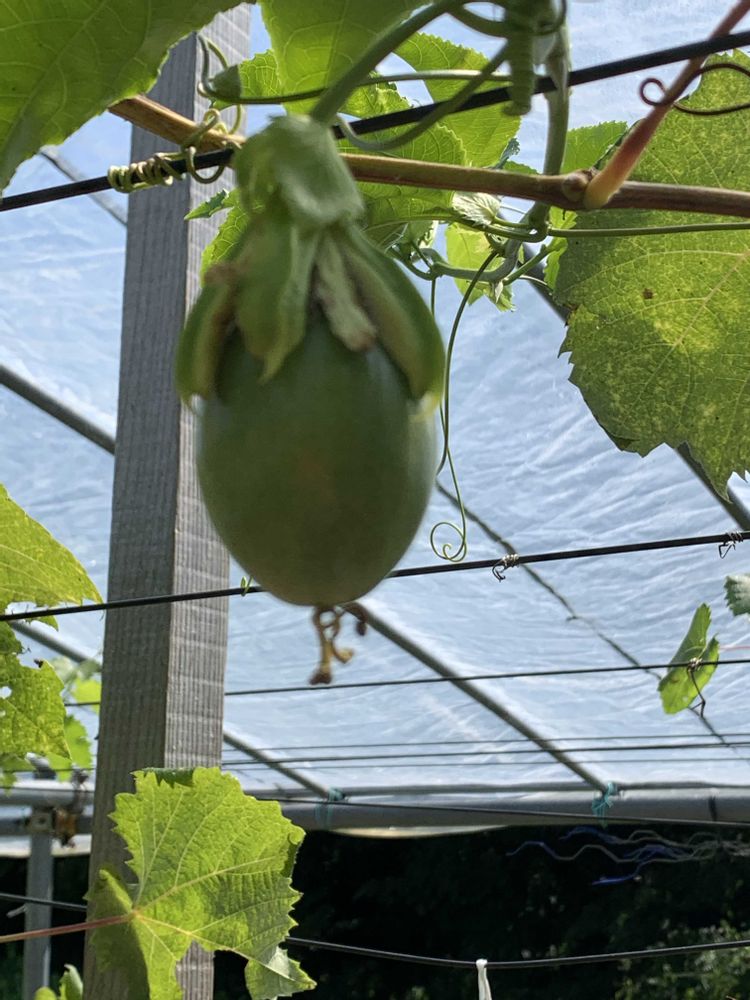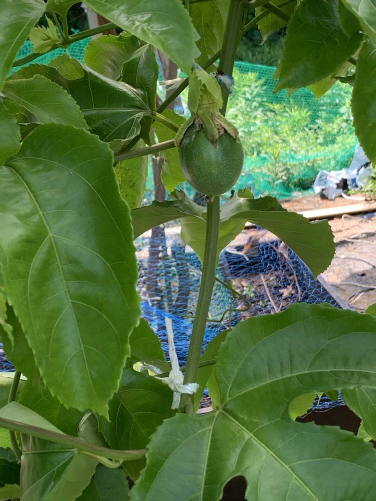 パッションフルーツ🥭の実を見つけました。あれ?実を探してたら何か不思議な枝が、皆さん分かりますか?三枚目をよく観てください。全く動かないパッションフルーツの不思議な枝です。