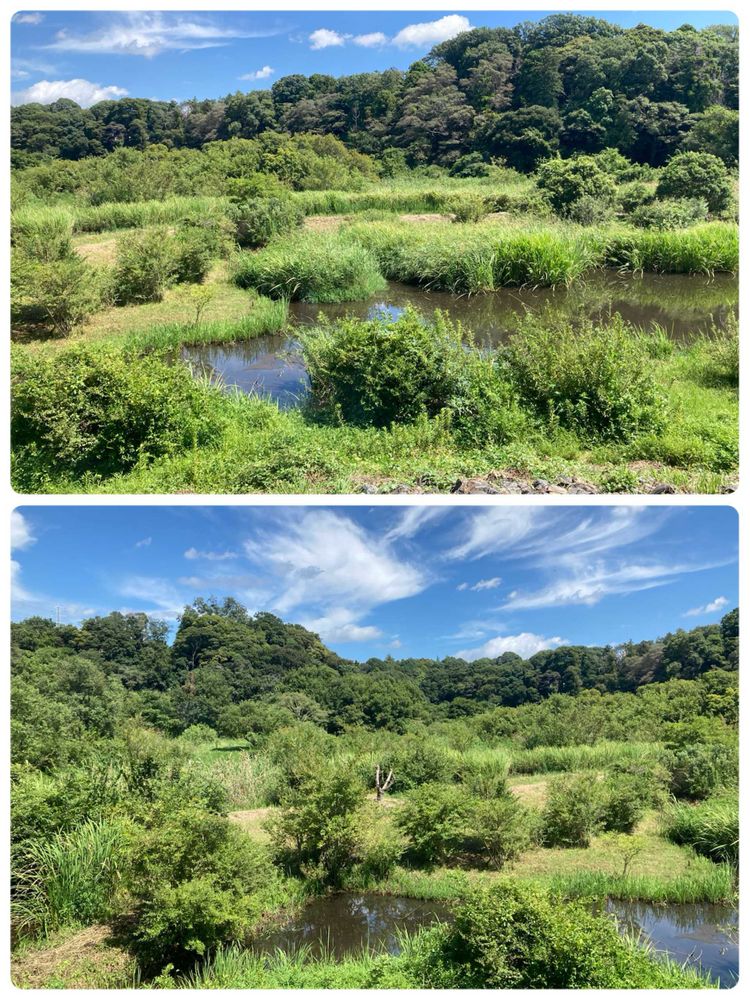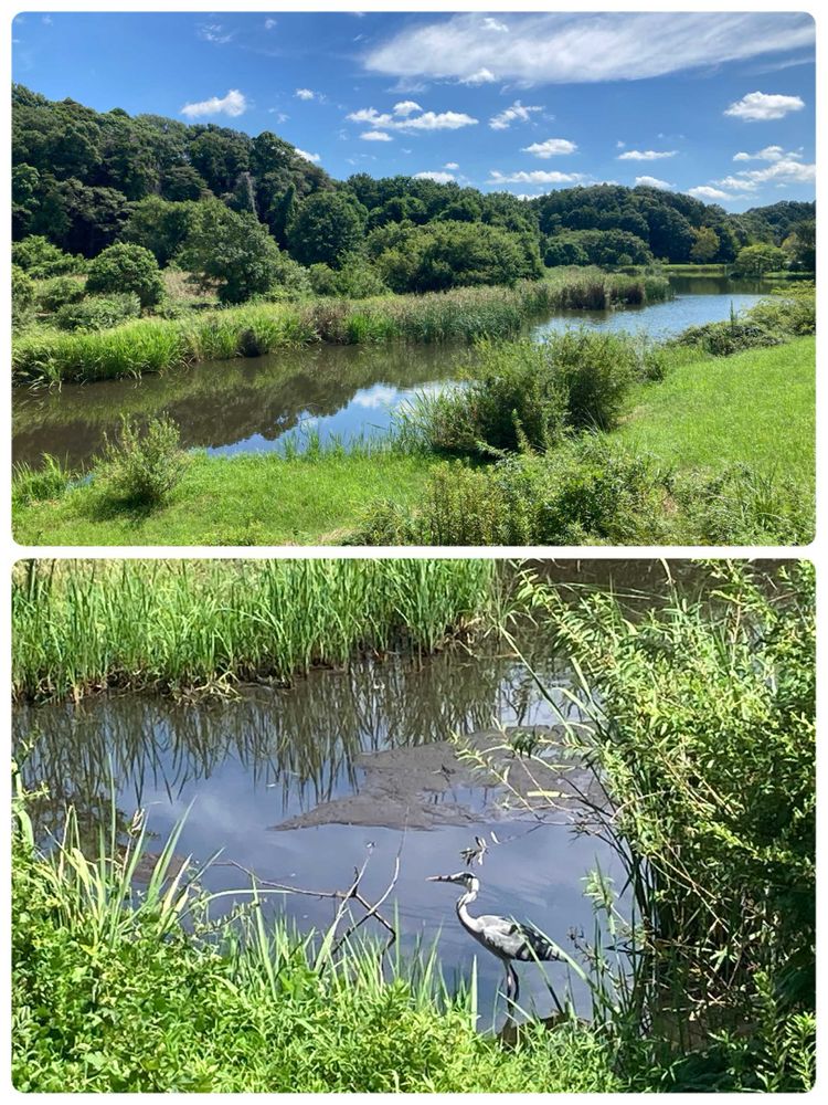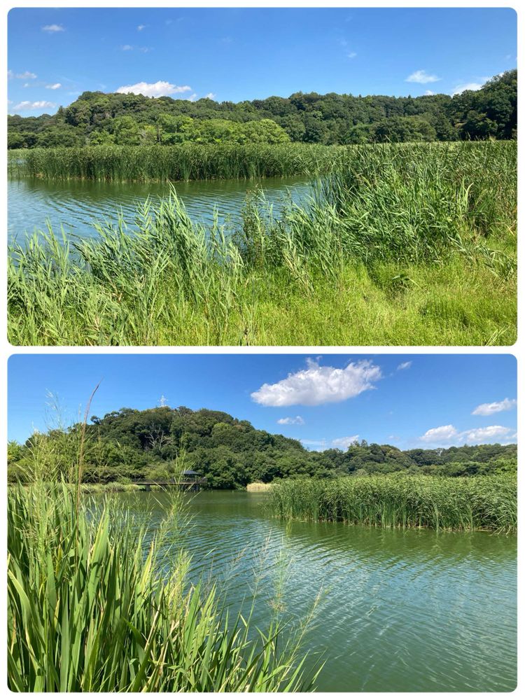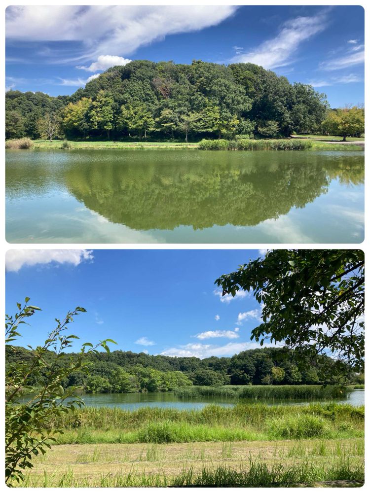 千駄堀のほとりから眺める景色には未だ夏の余韻が…