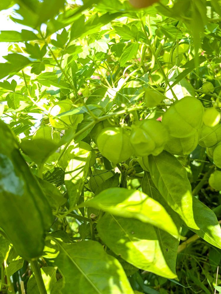今年のフウセンカズラはピーマンと隣り合わせで!