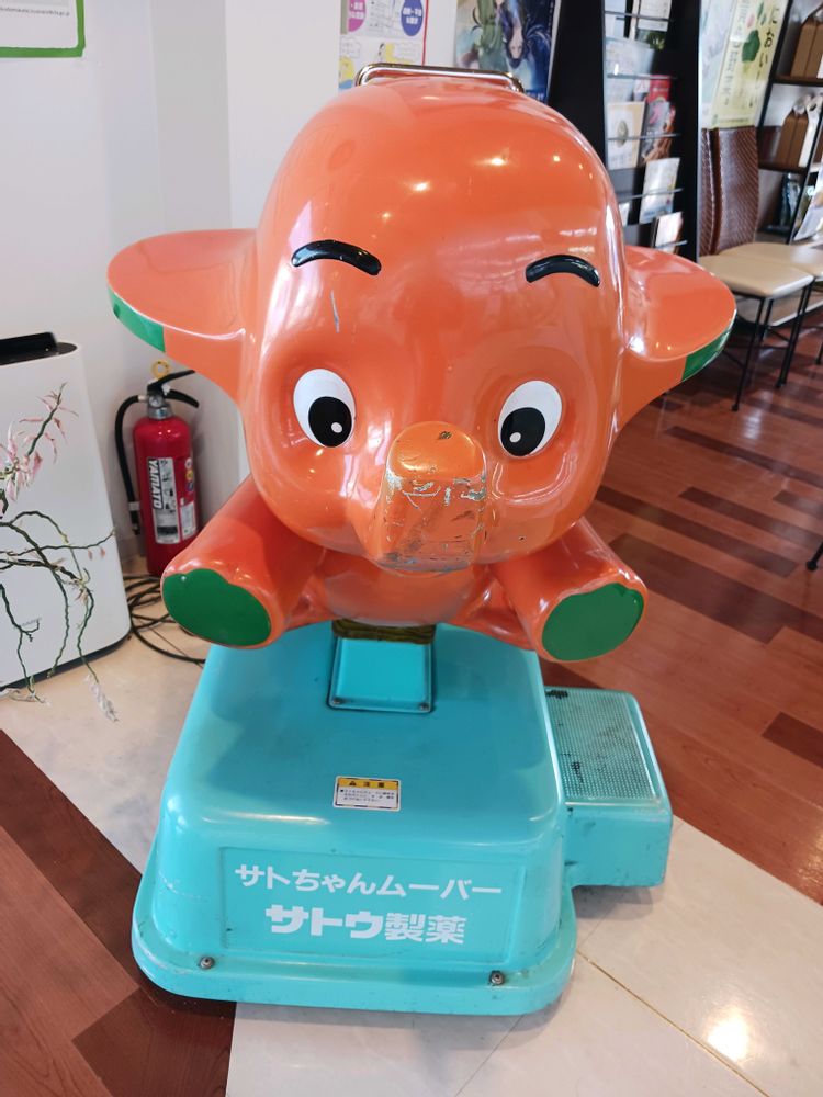 昔、薬局の表で¥10入れて乗れる乗り物ありました。