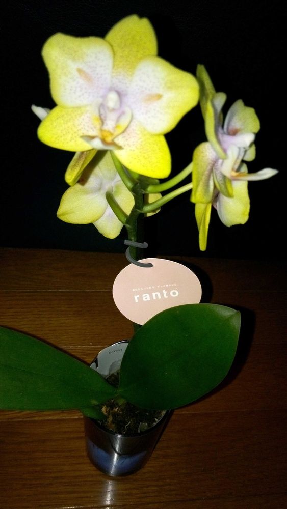 「胡蝶蘭」です。正しくは、「ミニ胡蝶蘭」です。黄色い花に惹かれました😍