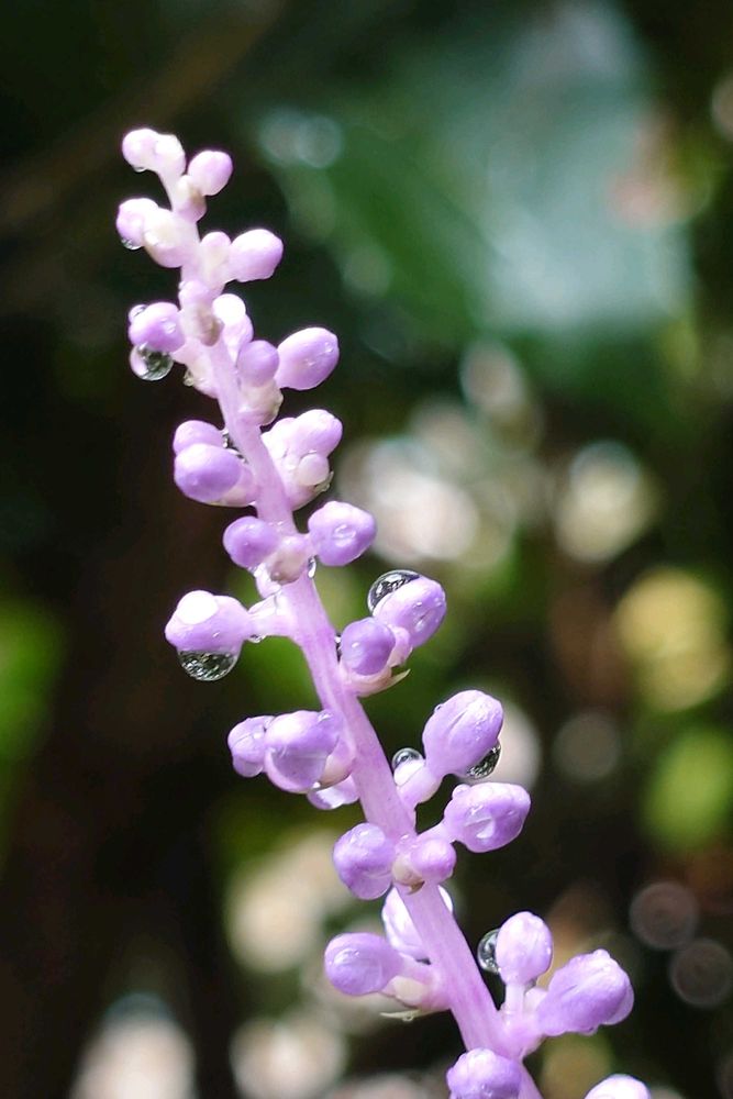 ヤブラン💜雨粒纏って輝いていますね☺️