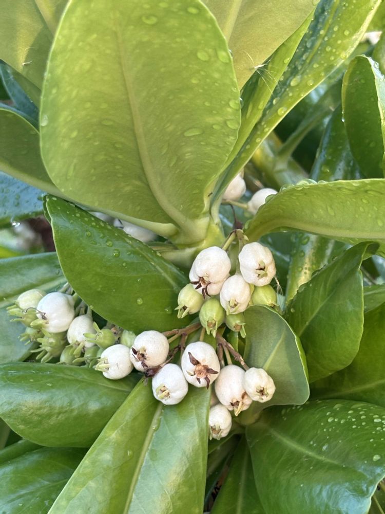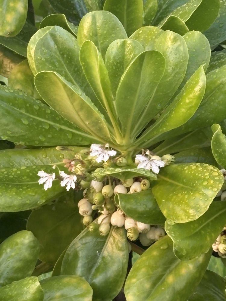葉は茎の先に集まって互生し 革質でトベラに似て少し大きい