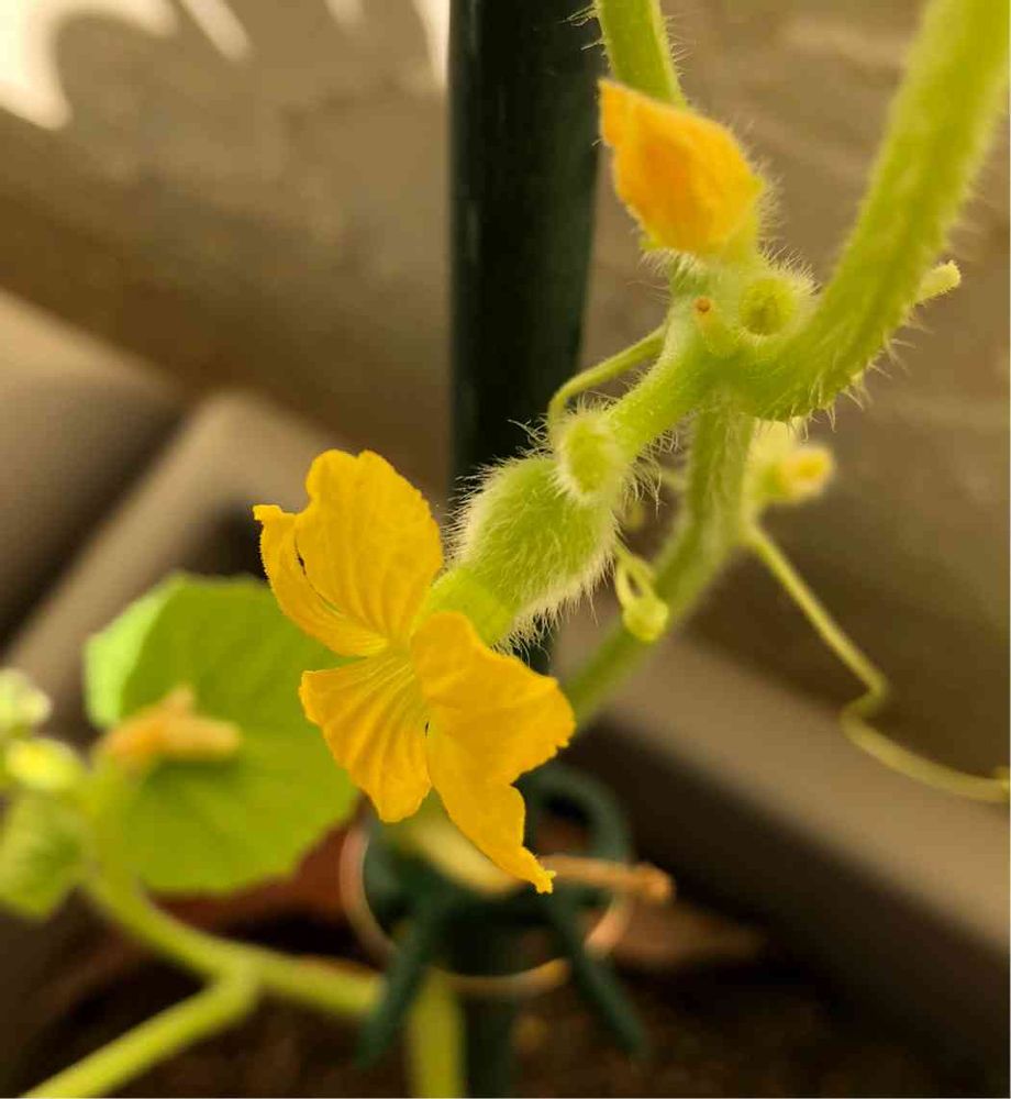 前回の雌花と思われた花はいつの間にか消えてましたが、今朝はこの雌花発見。今度こそ〜