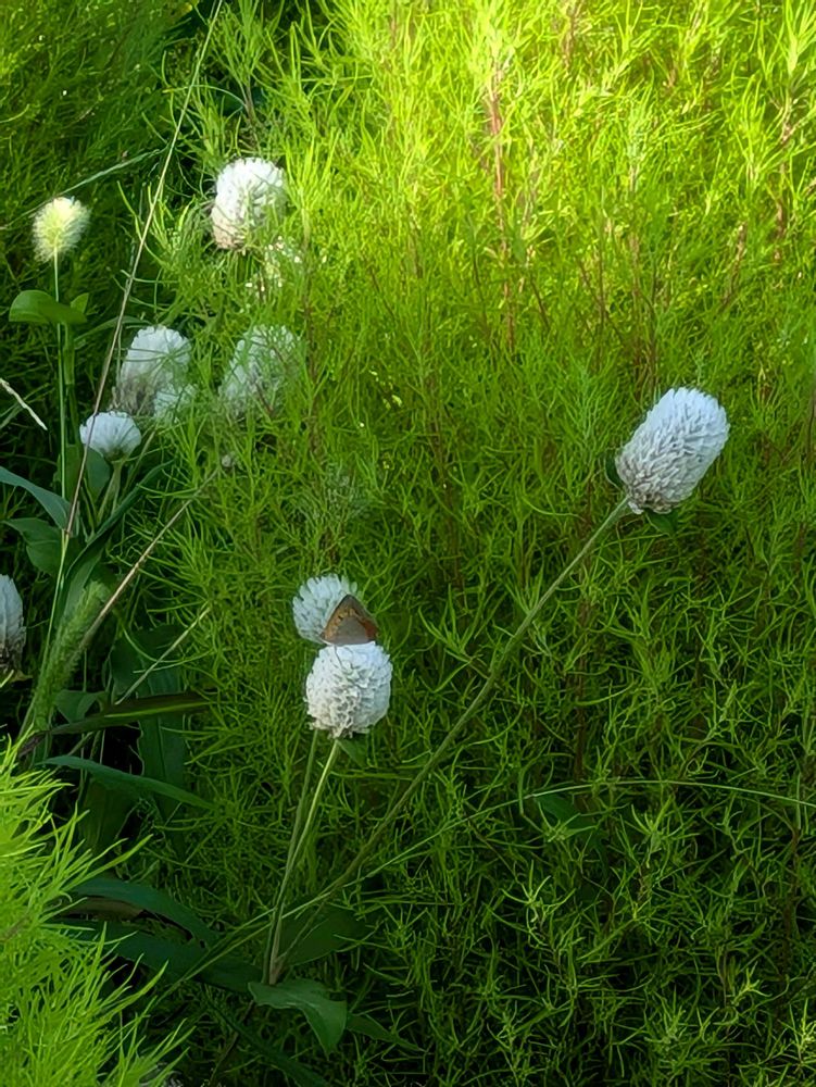 ベニシジミチョウになった気分になり、センニチコウとコキアの森に見えました🌳