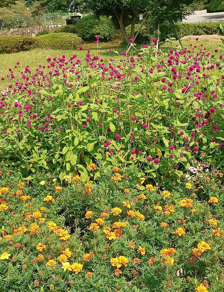 丁度、千日紅が見事に咲いてて素晴らしい景色ですね💓💕