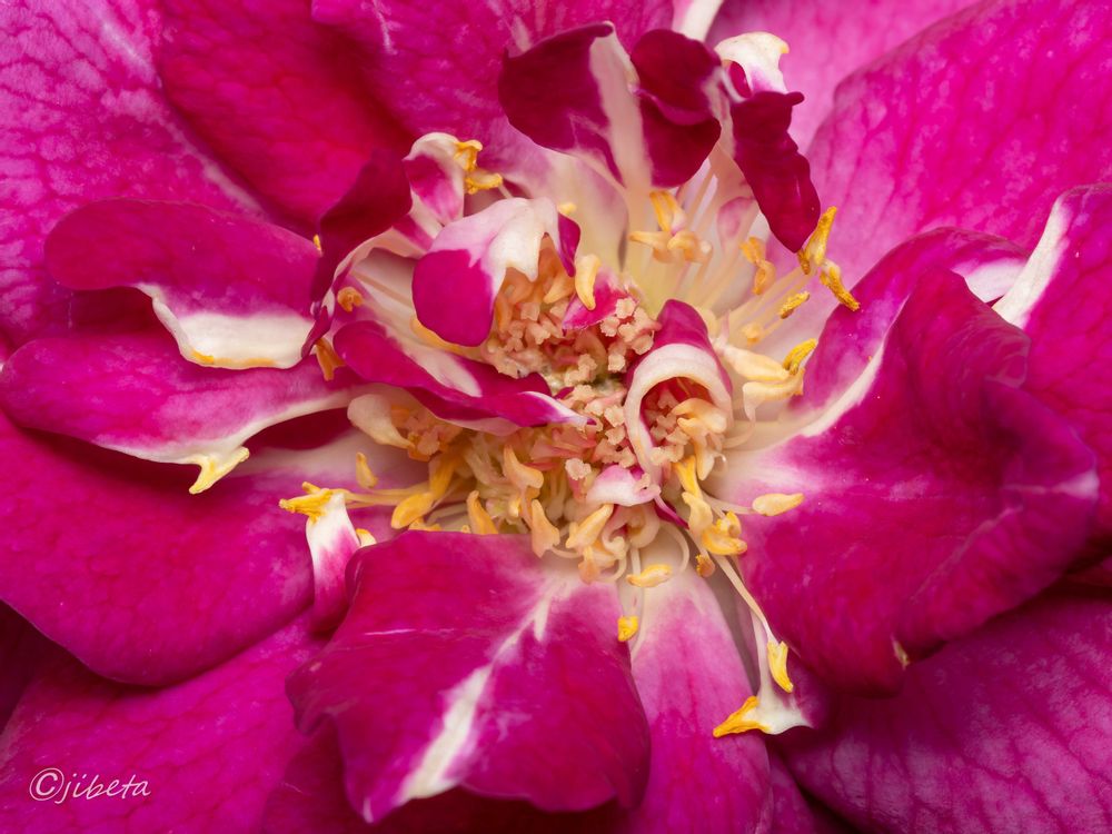 ベランダで咲いたバラ「グレーフィン・ディアナ」の花芯部分です。
