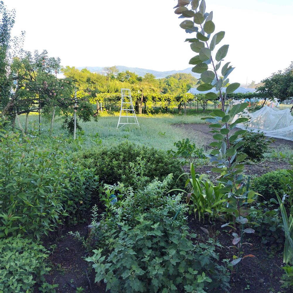こちらも秋の代表花、キクやフジバカマがモリモリに…遠くにスモモの実もたわわになっています😋👌