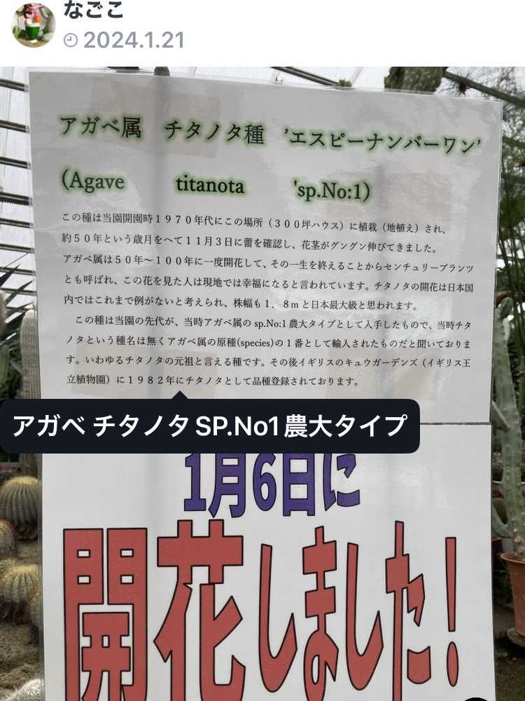 50年かけて咲いたアガベのお花を見に行ったのが1年半前の事🌼