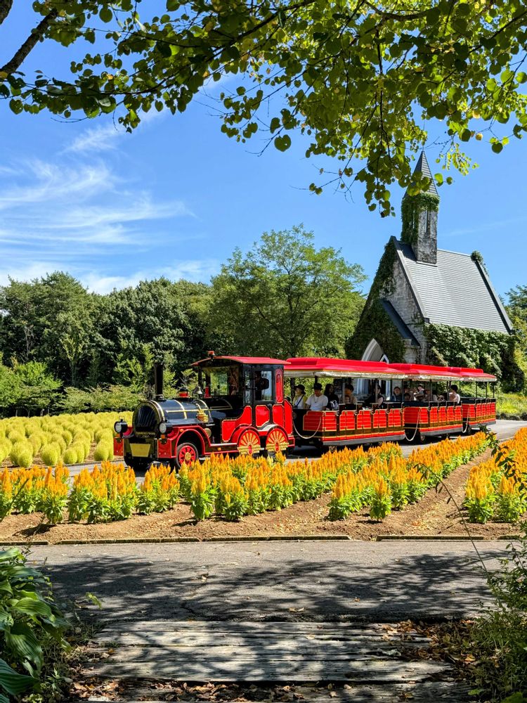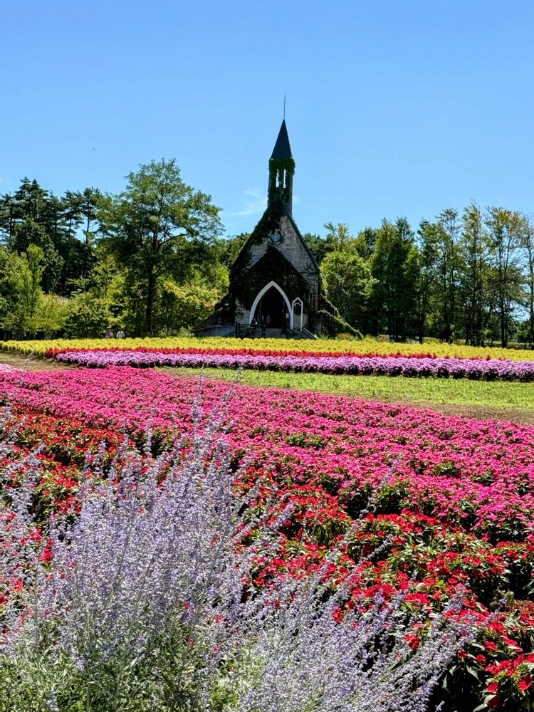 あの時、花の教会のまわりには紫色のお花が咲いていたように思いますが、名前を思い出せないです😅